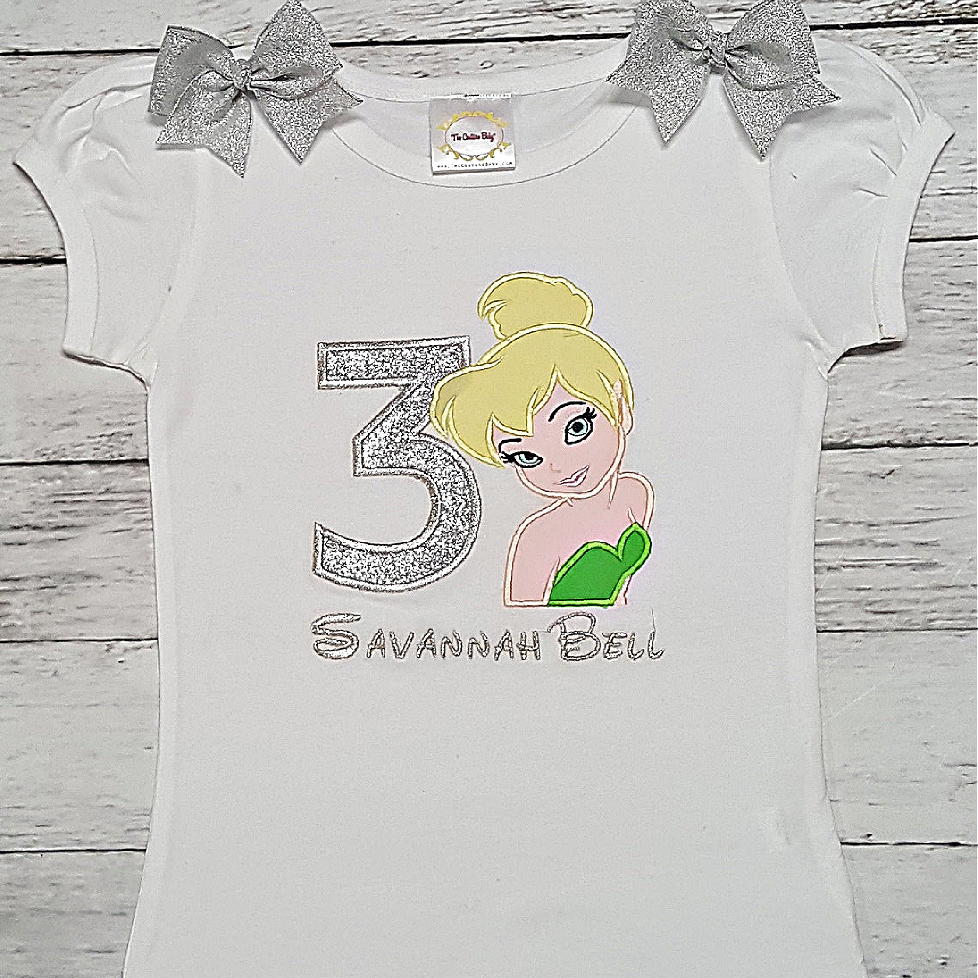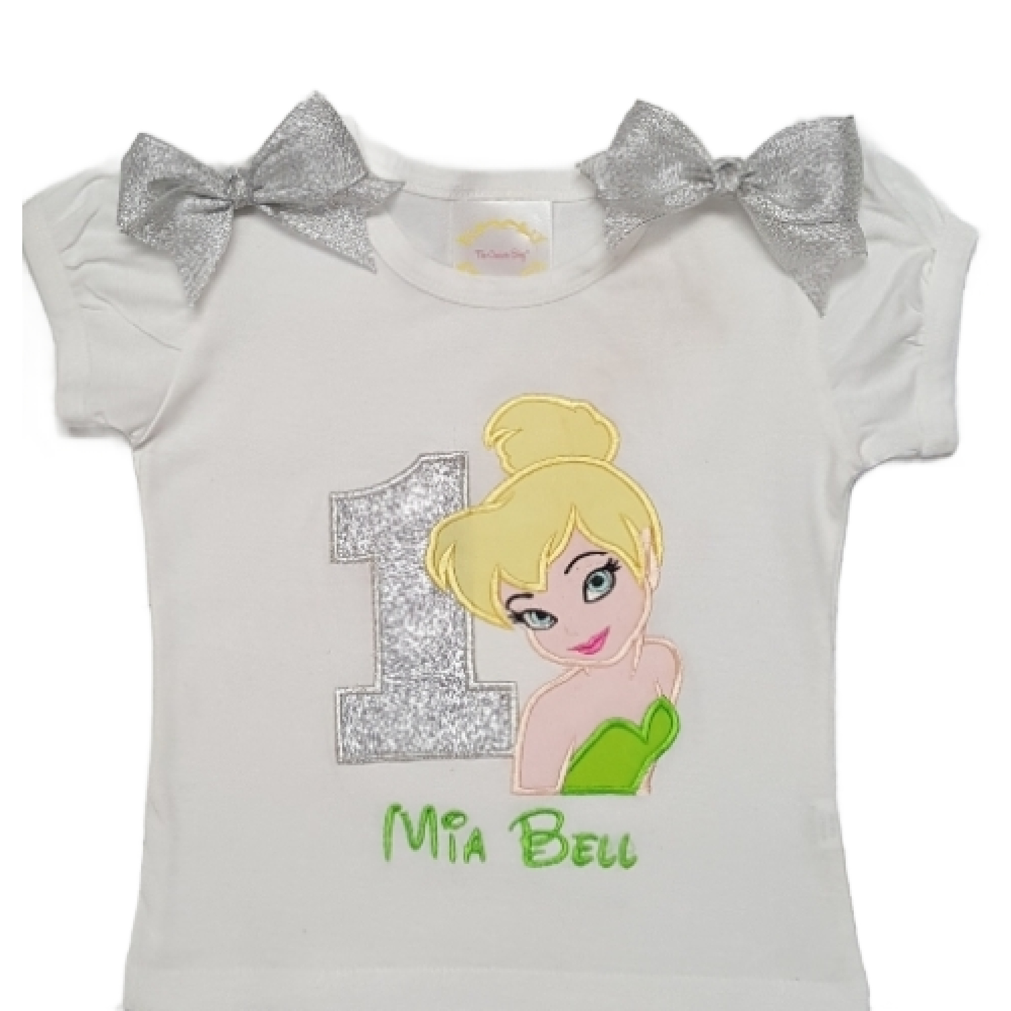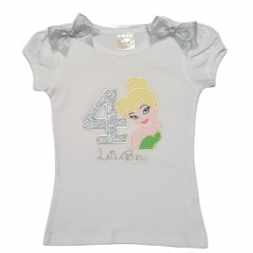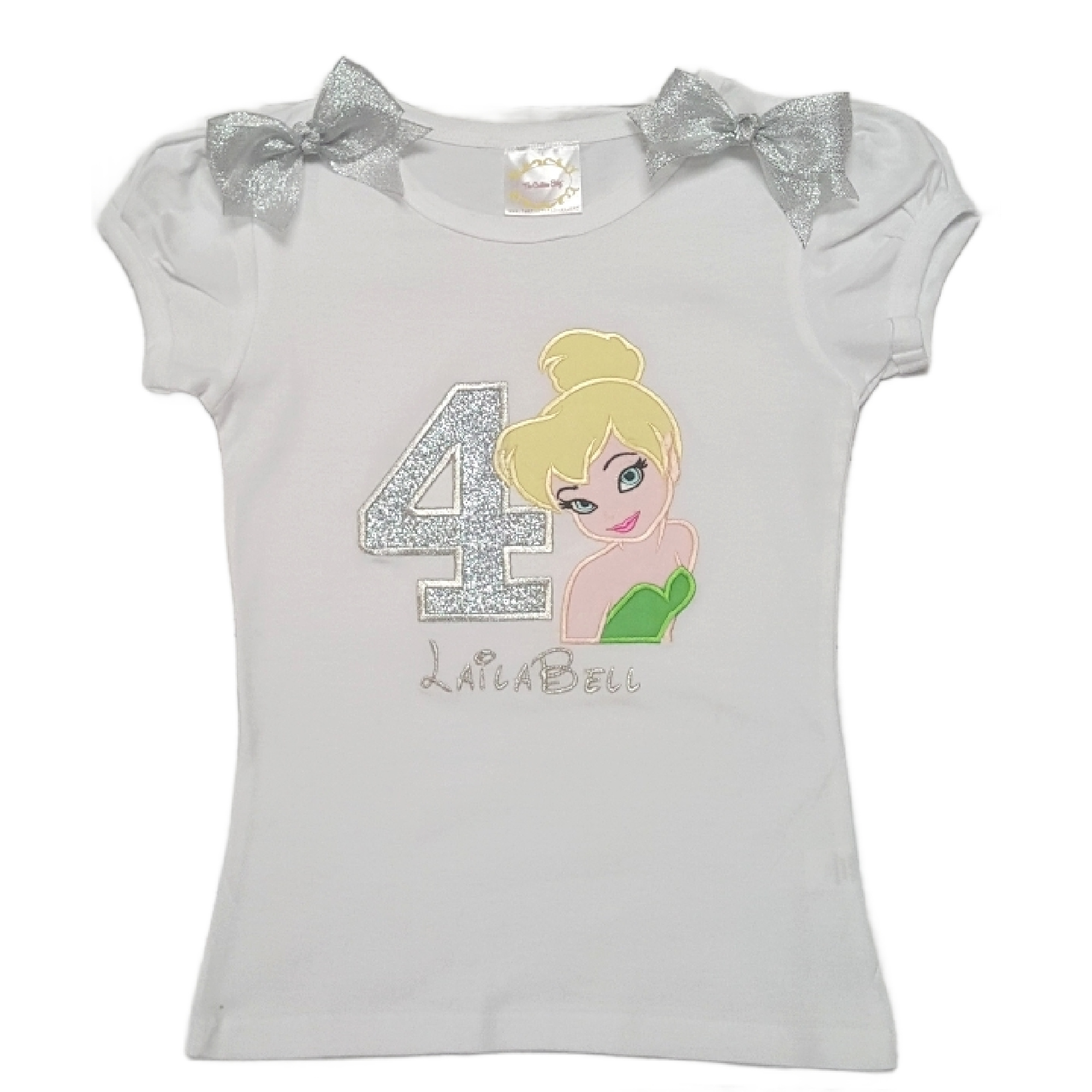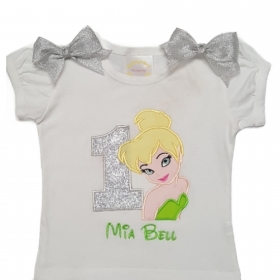 Embroidered TinkerBell with silver metallic age & embroidered lime green name/