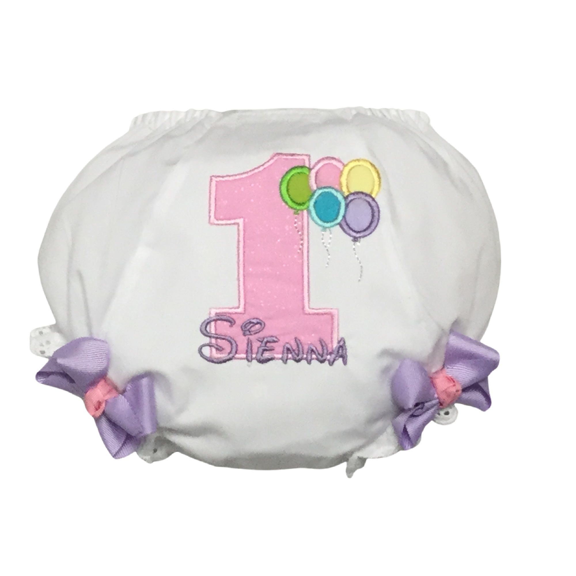 Machine applique & embroidered balloon design with age a personalized with her name.