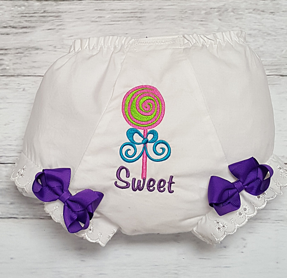 Adorable lollipop diaper cover! Design your own with colors and ribbon! Your choice of name or saying! So yummy good enough to eat!