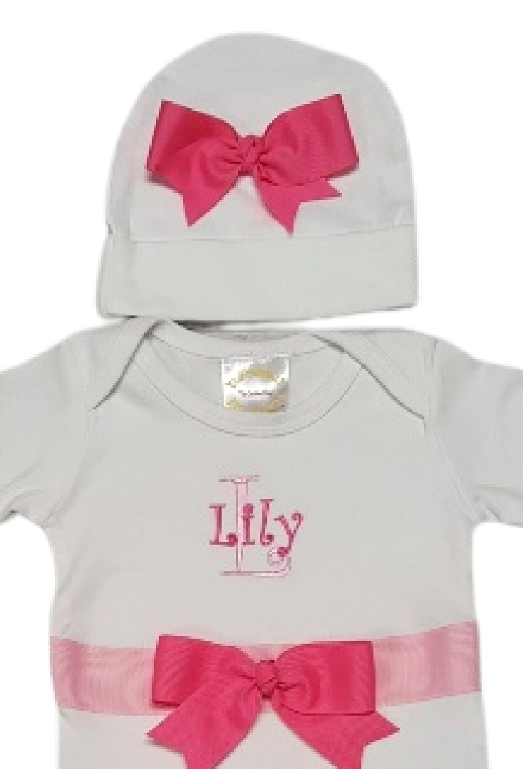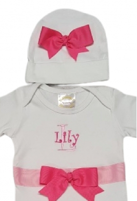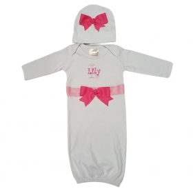 Hot Pink & Light Pink Personalized White Layette Gown & Hat Set