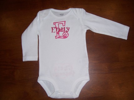This onesie is perfect for all cutie patooties! The front has appliqued initial and name (optional), and the back side is has an embroidered heart and "cutie patootie" on the rear end.