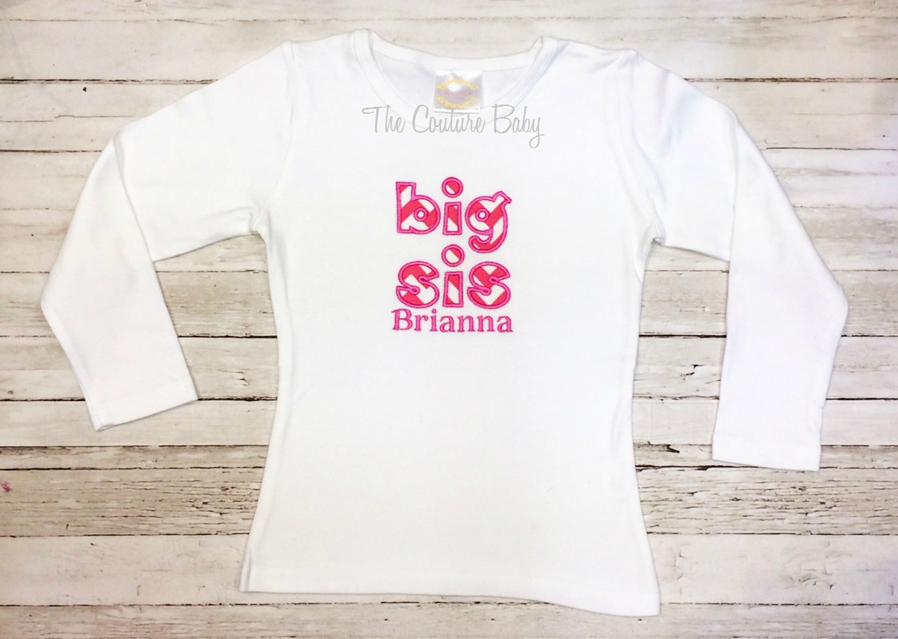 Big Sis or Little Sis Hot Pink Chevron Personalized Shirt or Onesie