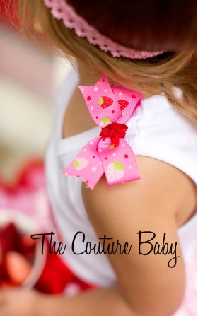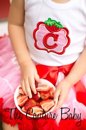 Adorable initial top with strawberry applique done in pink, green, and red. Topped of with matching strawberry handmade bows on shoulder. Choice of tank, onesie, or shirt. So sweet it's good enough to eat! YUM!