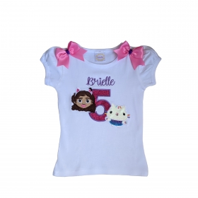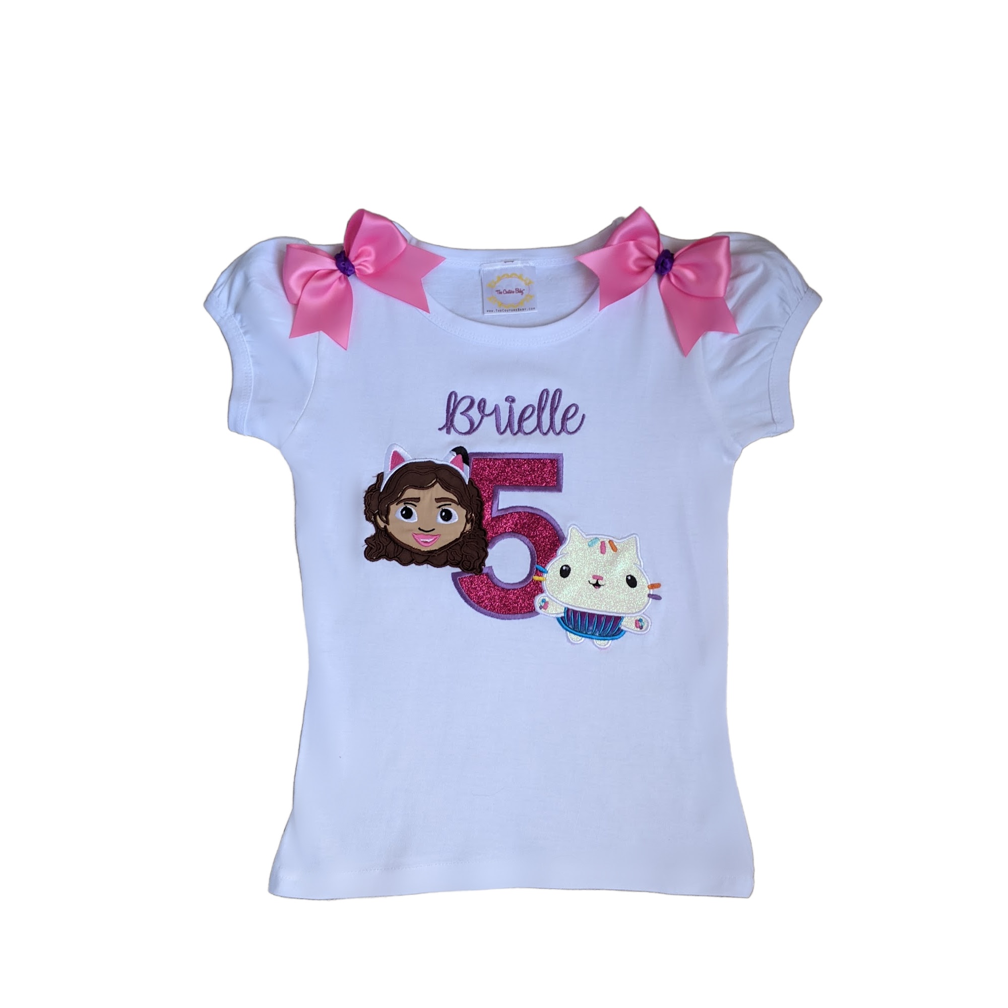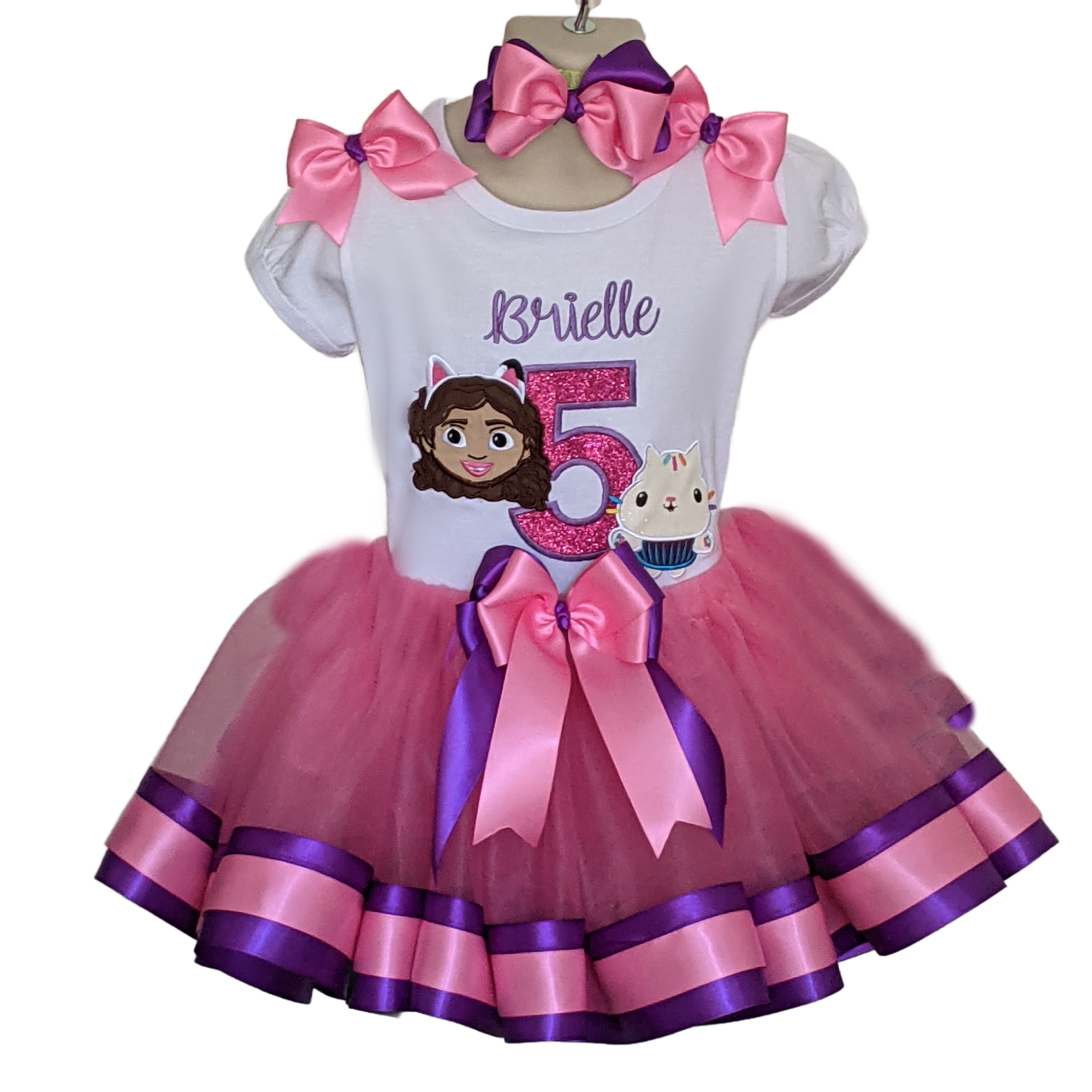 Choice of 100% cotton shirt-bodysuit or tank top with 2 bows at the shoulders. Personalized just for her with a pink glitter age and pink name. The tutu is adorned with a removable bow at the waist. Shirt bows are also removable.