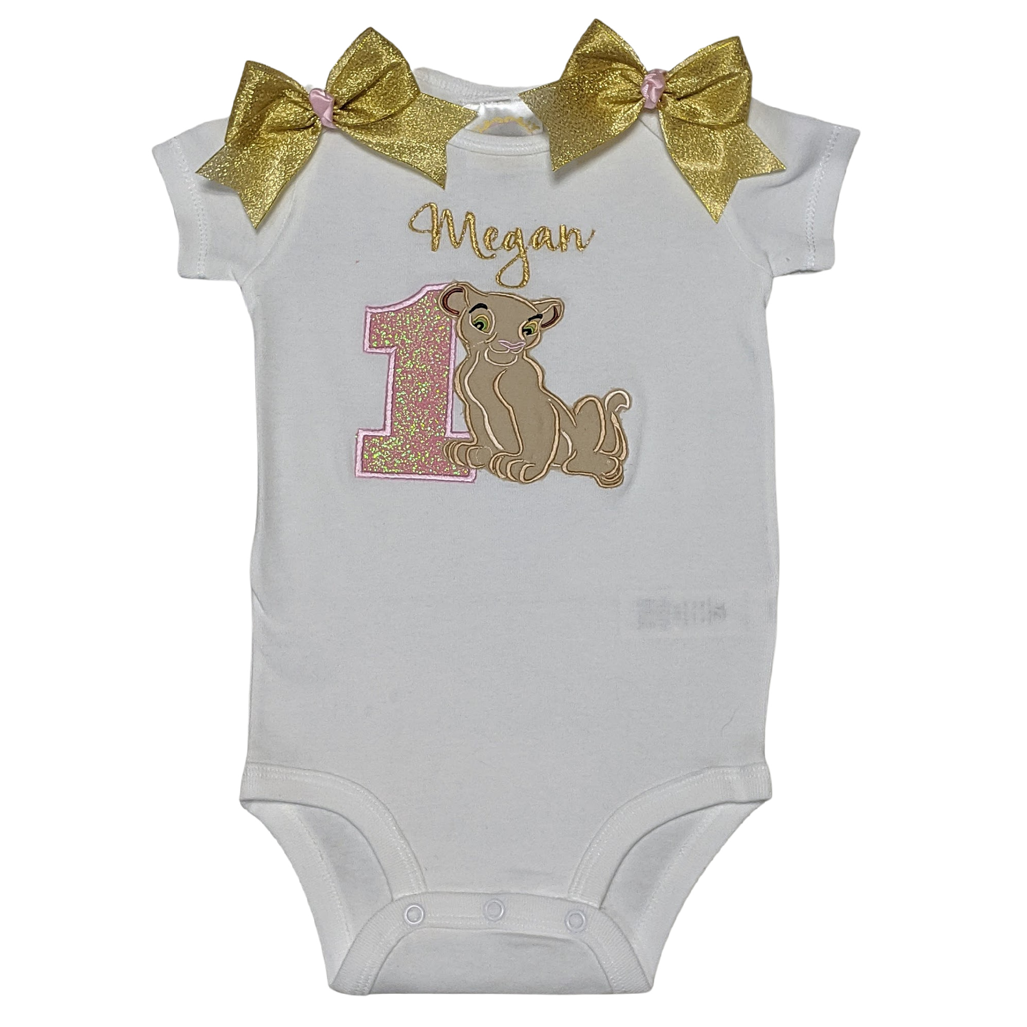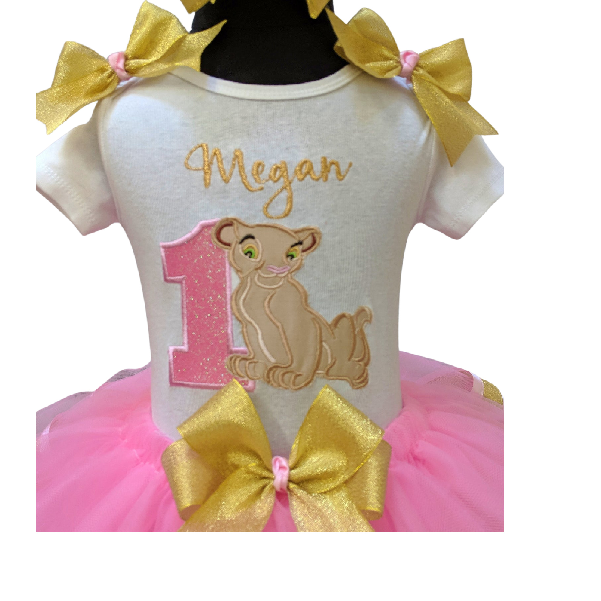 Won't she be the star wearing her full & fluffy custom made Nala Pink & Gold Ribbon tutu set.