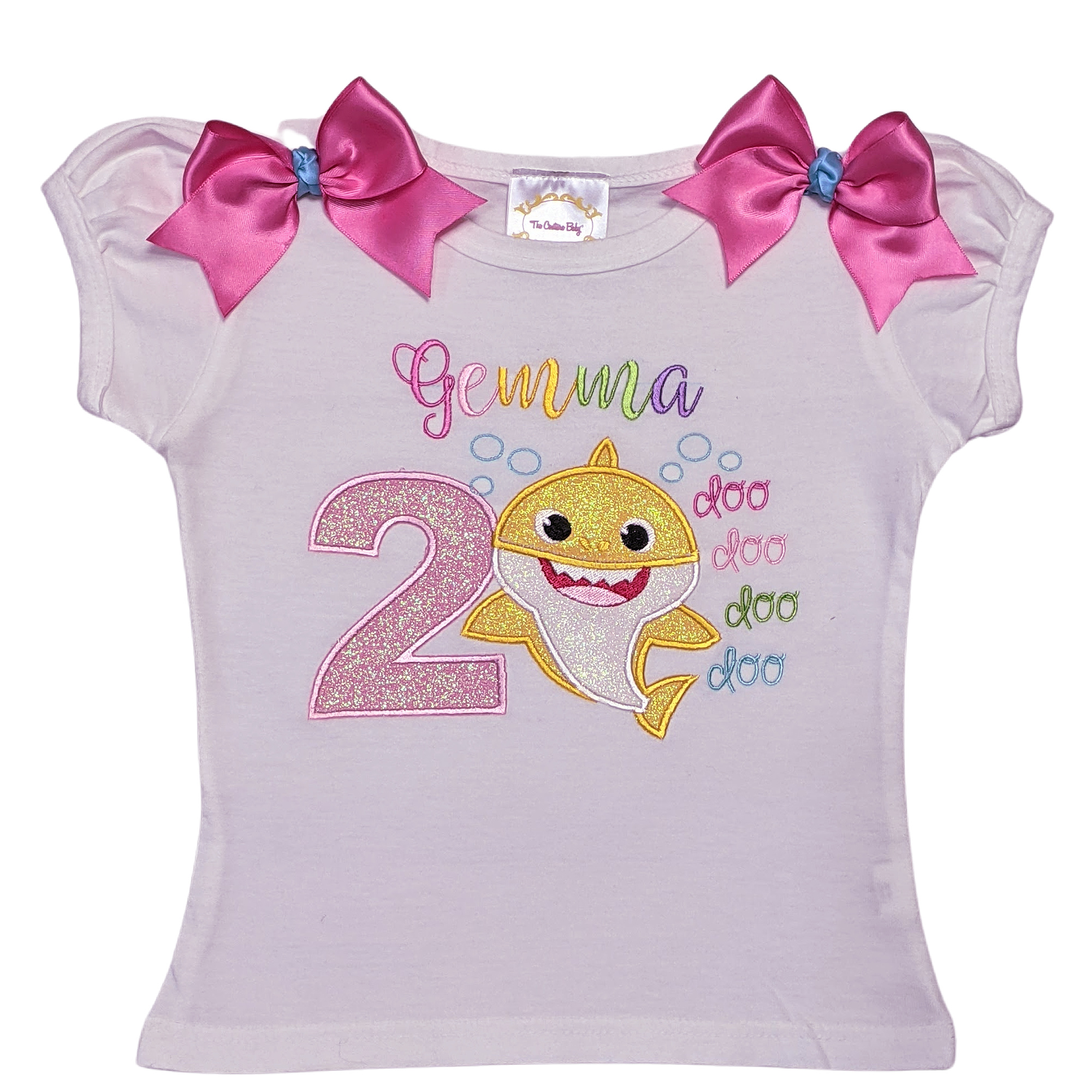 Extra full & fluffy Baby Shark Personalized Ribbon tutu 3 pc set. It includes ALL BOWS shown in the photo!