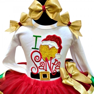 I Love Santa Christmas Red Green Gold Ribbon Tutu Personalized 3 Piece Set