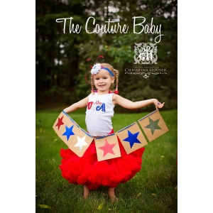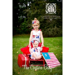 Patriotic July 4th Red White Blue Glitter Ribbon Tutu Personalized Shirt Top and Headband 3 Piece Set